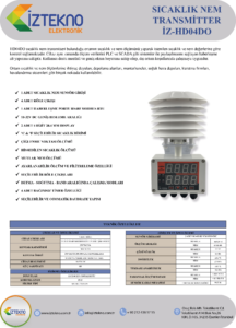HD04N ortamda bulunan sıcaklık ve nem ölçümünü yapıp buna bağlı kontrol sağlayan bir cihazdır.Cihaz aynı zamanda ölçüm bilgilerinin PLC/SCADA gibi sistemlerle paylaşılmasını sağlayan haberleşme alt yapısına sahiptir.Kullanıcı dostu menüsü ve geniş ekran boyutlarına sahiptir.Dış ortam şartlarında çalışmaya uygun koruma yapısı.